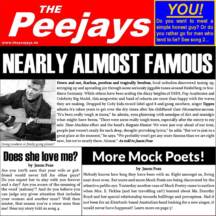 Und das ist noch nicht alles, denn The Peejays arbeiten momentan an einem Album, das all die Peejays-Klassiker enthält, und den Titel "Set The Record Straight" haben wird. Das Album erscheint im Sommer als CD und digitaler Download auf Villa Bäh Records!